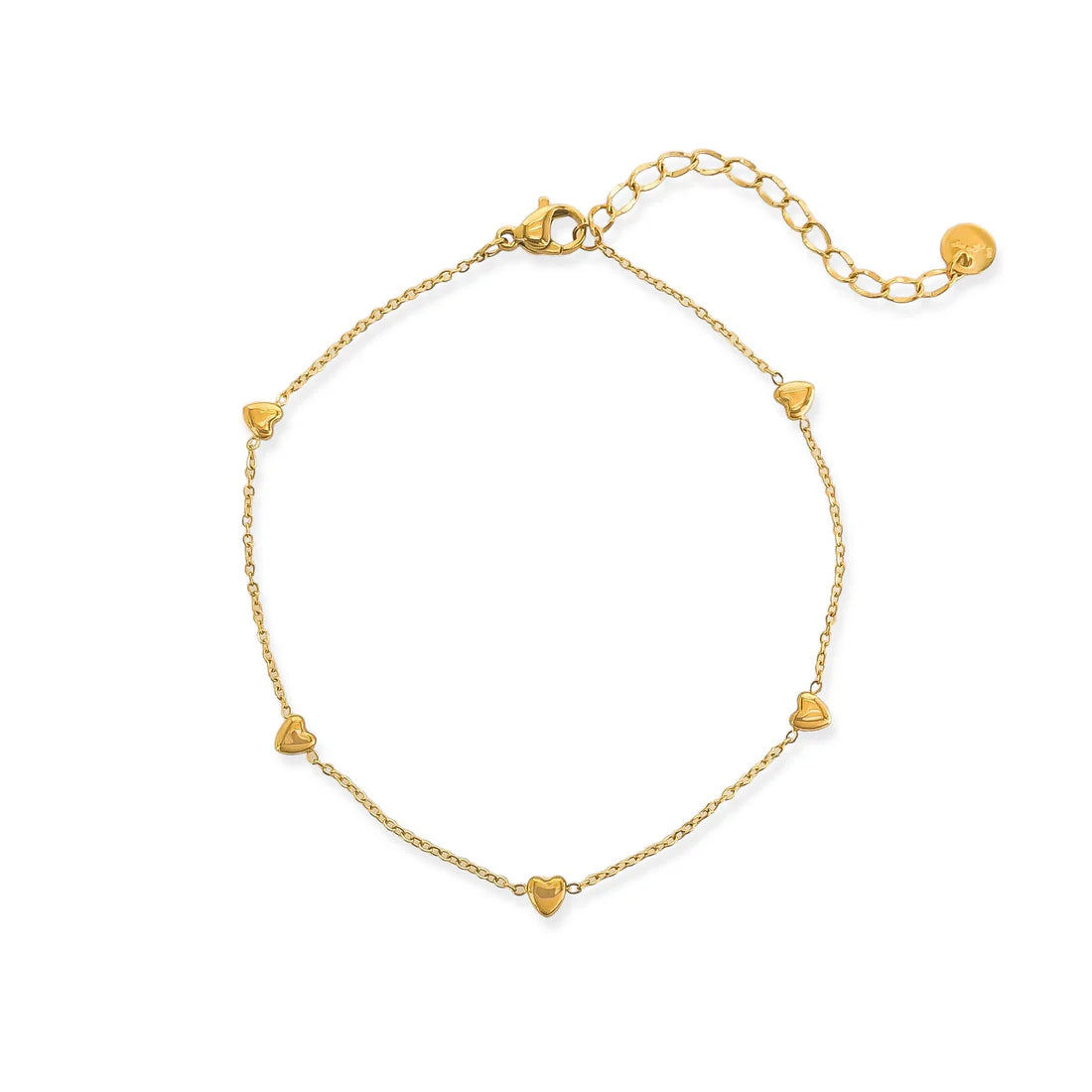 This Water Resistant anklet is the perfect combination of dainty elegance and practicality. Its delicate chain is adorned with five hearts, making it a charming addition to any outfit. With its water resistant design, this anklet can be worn worry-free, allowing you to add sophistication to any attire.