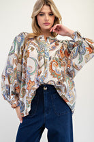 ee:some Paisley Printed Bubble Sleeve Top – Elegant & Lightweight Blouse