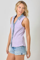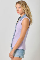 Mystree Washed Thermal Sleeveless Button Down Top – Lavender