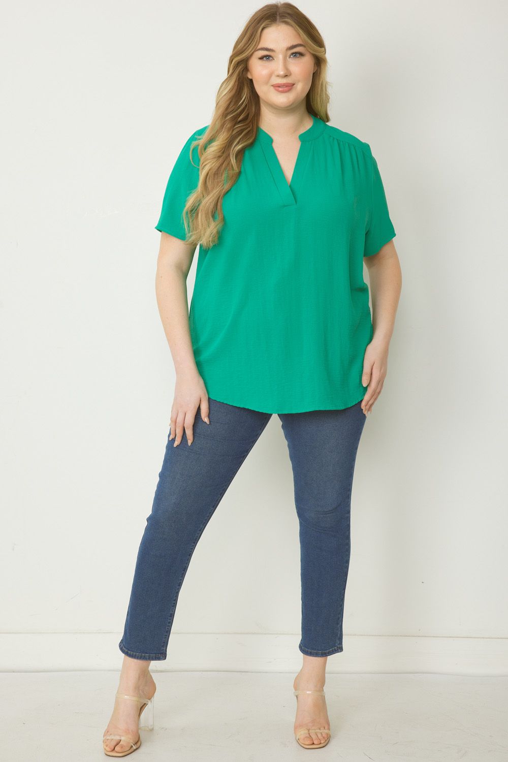 Our exquisite Curvy/Plus Blouse collection at Deja Nu Boutique, a prominent Women's Fashion Boutique located in Lampasas, TX. Our thoughtfully curated assortment features an array of sophisticated and flattering blouses designed to cater to all body types. We are committed to providing fashionable choices that celebrate individuality and boost confidence. Whether you're looking for versatile staples or statement pieces, our Curvy/Plus Blouse collection has something for every style and occasion.