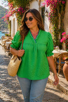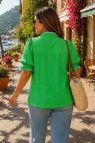Umgee Textured Puff Sleeve Plus Top Green