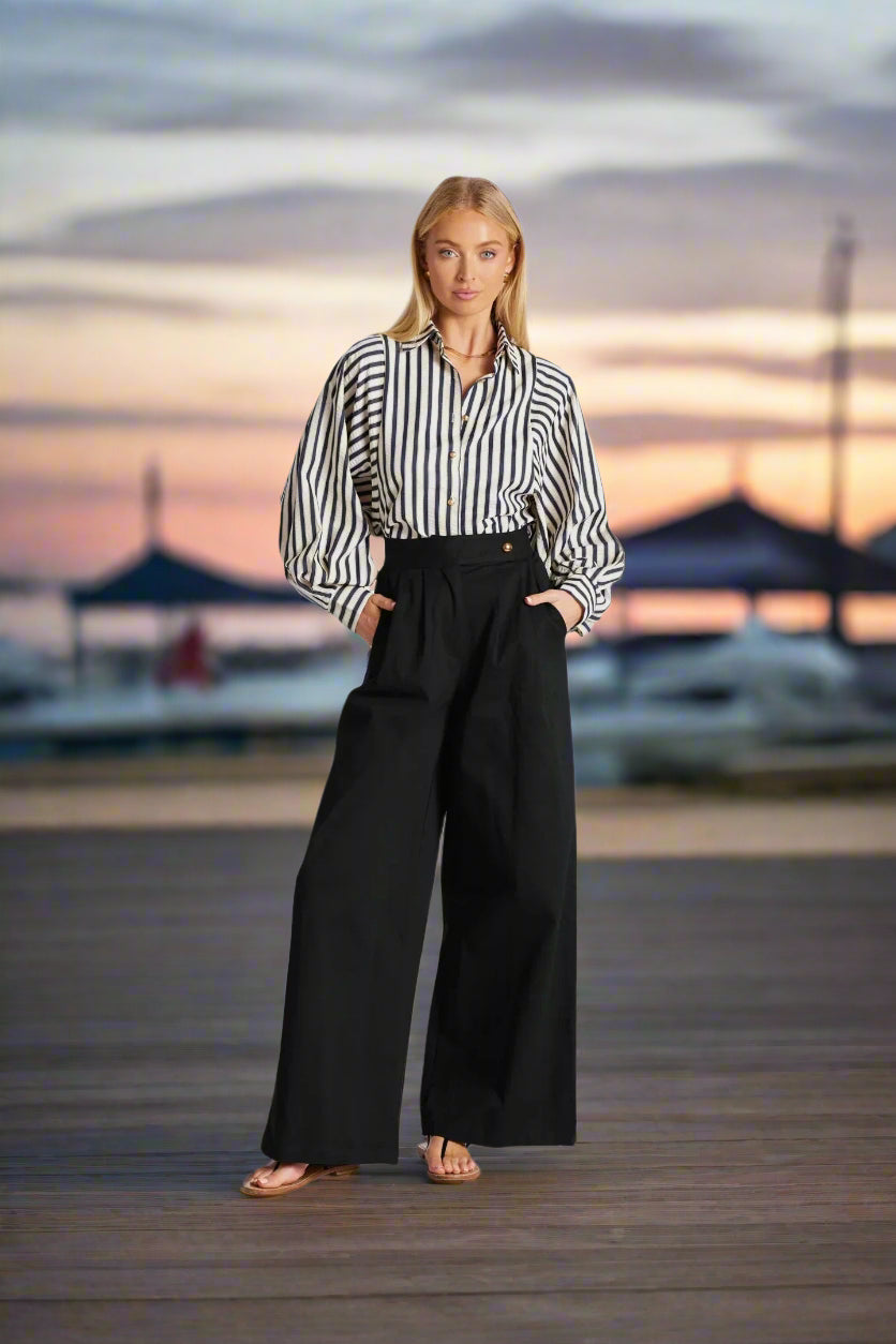 Meet The Aly Dolman, An Updated Favorite In Crisp Cotton Blend Stripe. This Top Has the Perfect Oversized Fit - Featuring Dolman Sleeves, Multi Directional Stripes, And A Shirred Back Yoke, This Shirt Combines Refined Details for A Versatile Go-To Piece In Your Wardrobe!