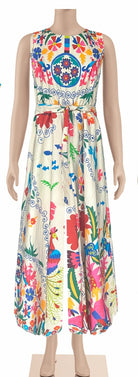 Make a bold statement with this vibrant Tropical Print Jumpsuit by Zenara Woman. Crafted from luxuriously soft 100% Peruvian cotton, this sleeveless one-piece is bursting with color and playful energy. The self-tie belt defines the waist while the wide-leg silhouette flows effortlessly for all-day comfort. Featuring a striking mix of tropical motifs including florals, birds, and abstract patterns—this piece is perfect for vacations, weekend markets, or festive summer events.