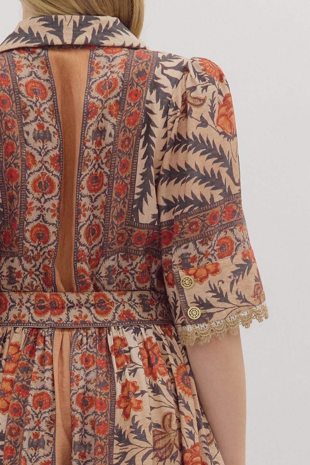 A little boho, a little vintage, and a whole lot of fall-ready charm—the Entro Charcoal Botanical Mini Dress is made to stand out. Designed in a bold multi-color botanical print, this style features short puff sleeves, a button-down front, a flattering tie waist, and feminine lace trim along the hem and sleeve edges. With convenient side pockets and a flirty silhouette, this mini is perfect for pumpkin patch days, fall festivals, or dinner with the girls.
