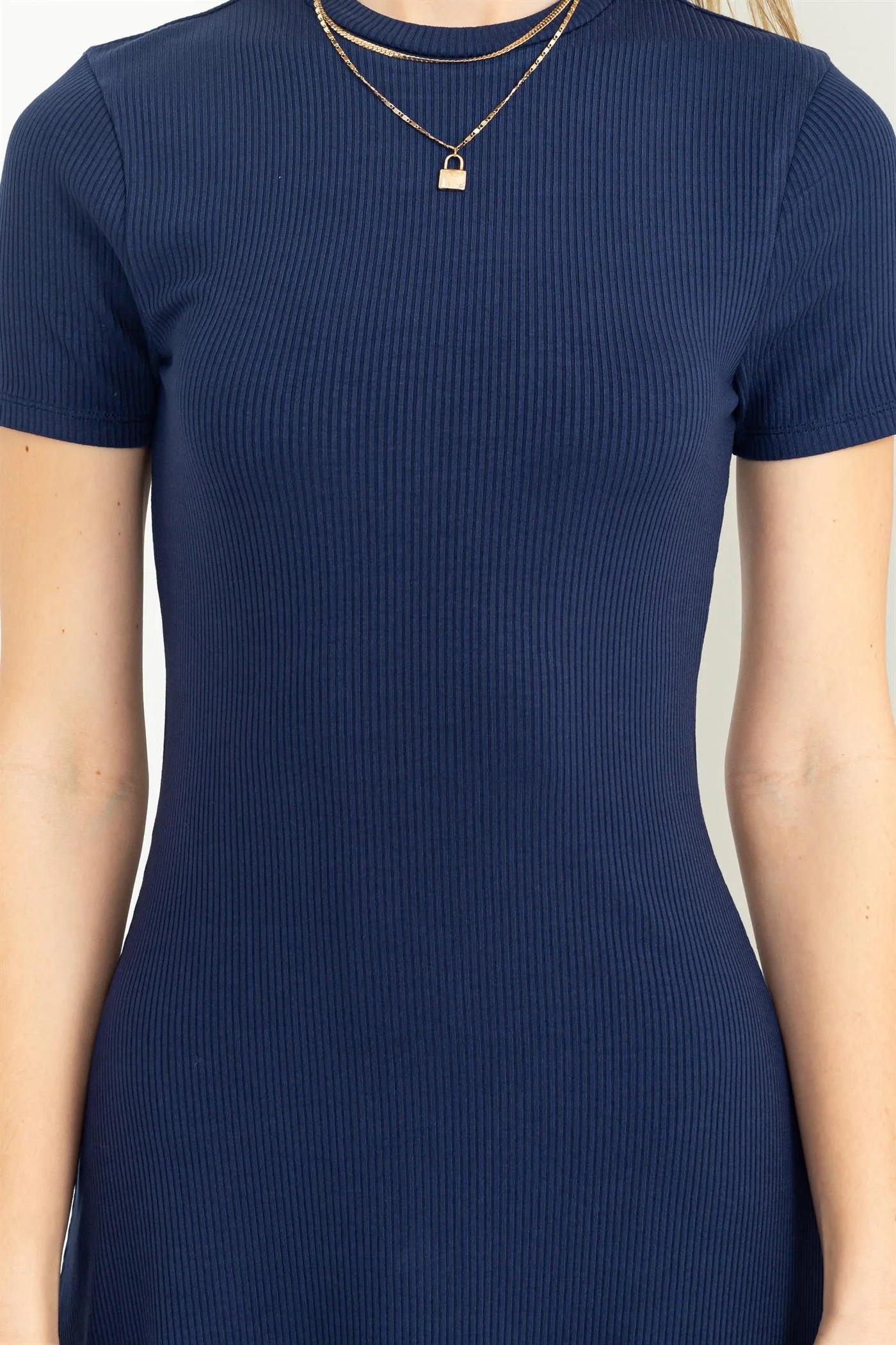 Hyfve Double Zero True Confessions Ribbed Short Sleeve Fit And Flare Mini Dress In Dark