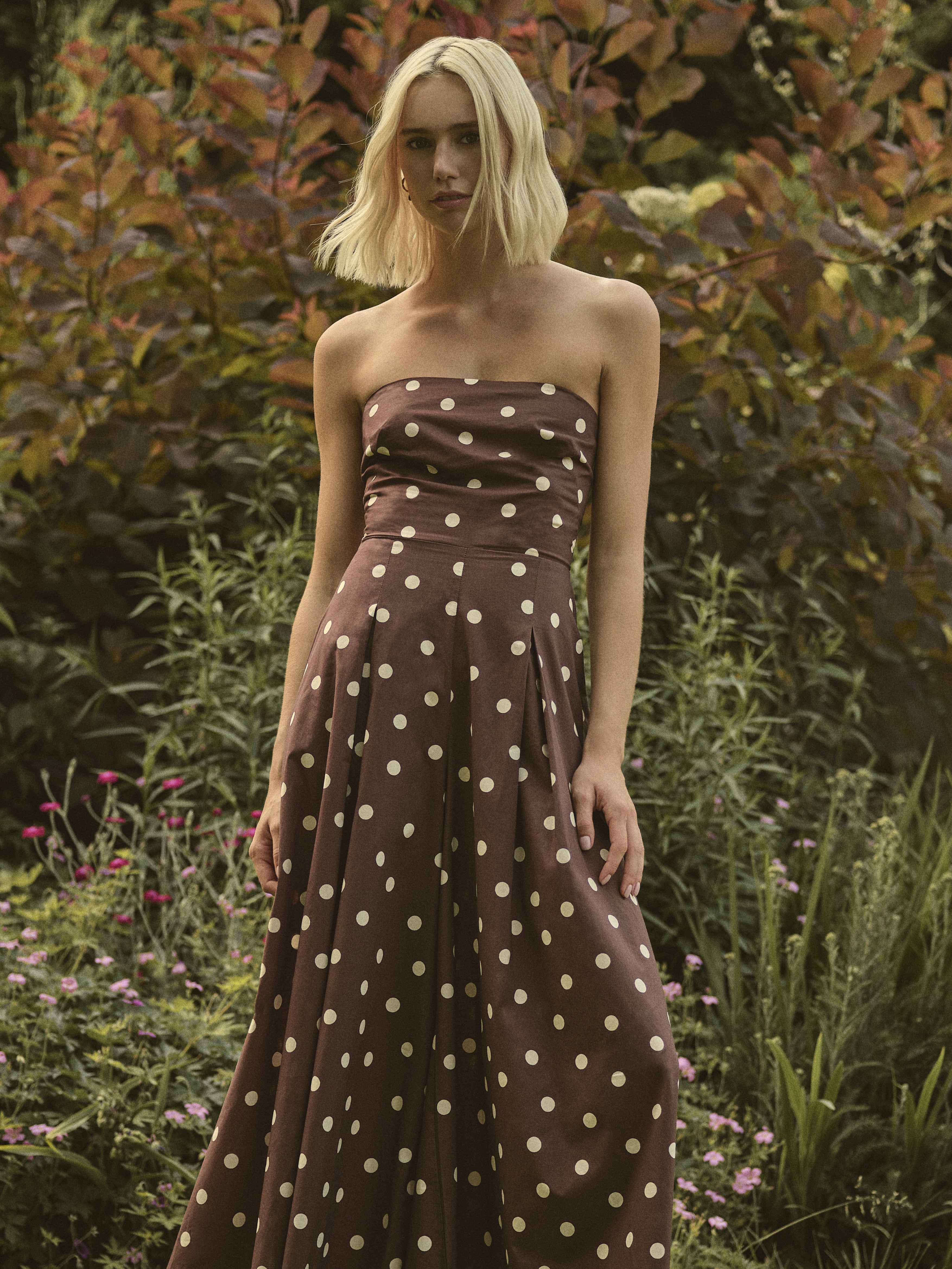 • Classic brown and white polka dot print