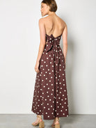 Playful meets polished in this standout Apricot jumpsuit. Designed with a flattering bardot neckline and a dramatic wide-leg silhouette, this piece brings effortless elegance to warm-weather dressing. The rich brown base paired with classic polka dots gives it timeless charm, while the back bow detail adds a feminine finishing touch.