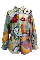 Make a statement as sweet as summer in the Queen of Sparkles Colorblock Plaid Fruit Button-Up Top. This vibrant long sleeve is bursting with sequin fruit appliqués, playful colorblocking, and a lightweight plaid fabric that keeps things breezy and bold. It’s the ultimate mood-booster for any fashionista ready to stand out.