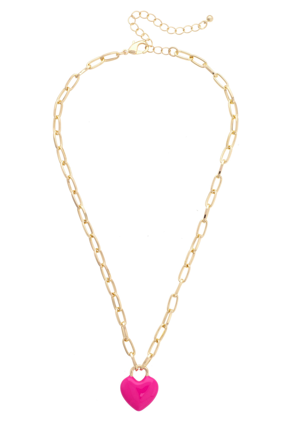 Canvas Style Bowen Puffy Heart Enamel Padlock Necklace in Fuchsia