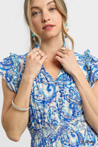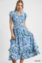🌊 Umgee Ruffled Paisley Tiered Midi Dress – Blue Mix