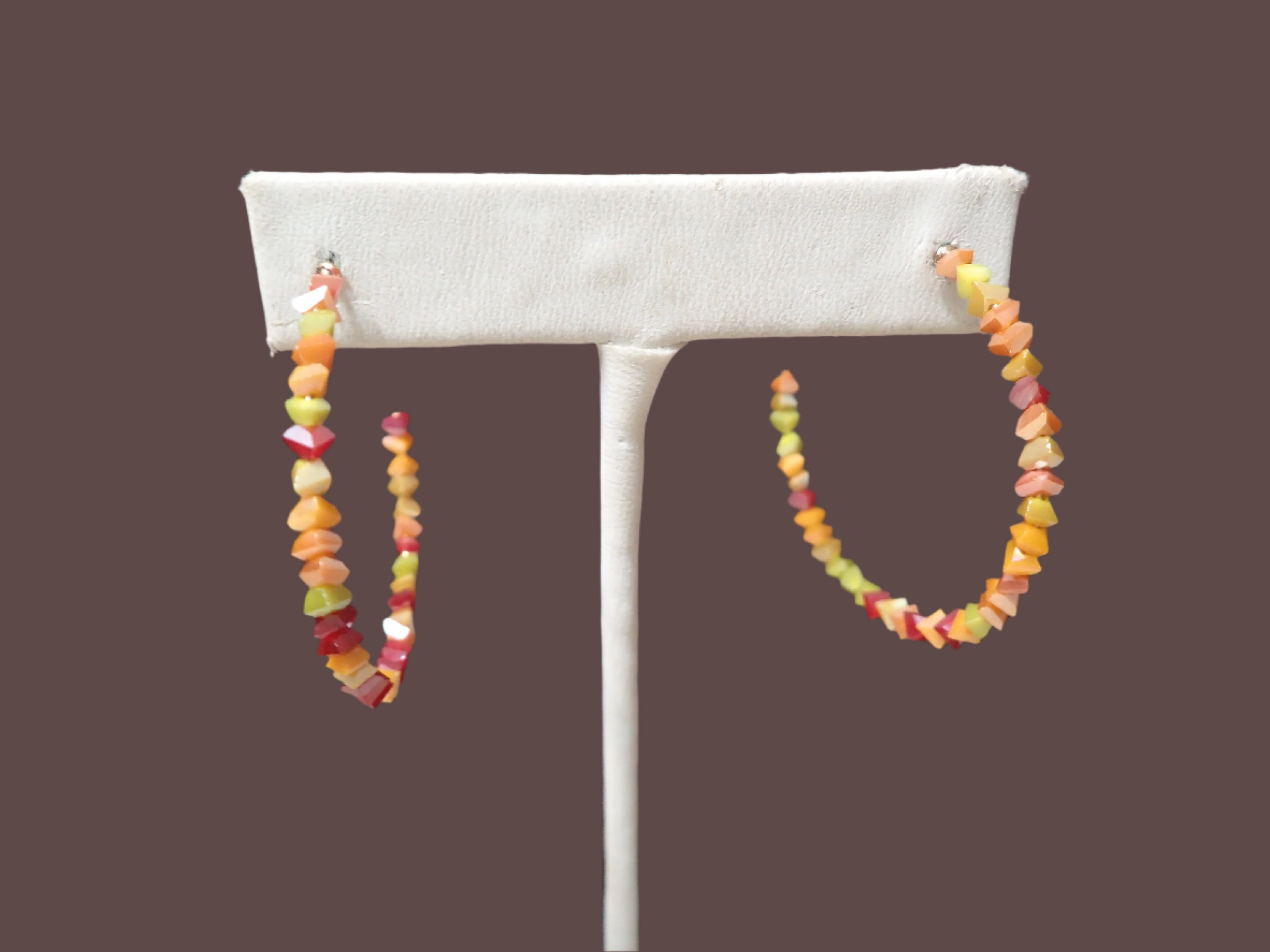 Meet your new favorite hoops with a twist of color! These half-hoop earrings are beaded in a gorgeous ombre rainbow of warm hues—think summer sunsets and fruity cocktails. Easy to wear, fun to style, and guaranteed to get compliments!