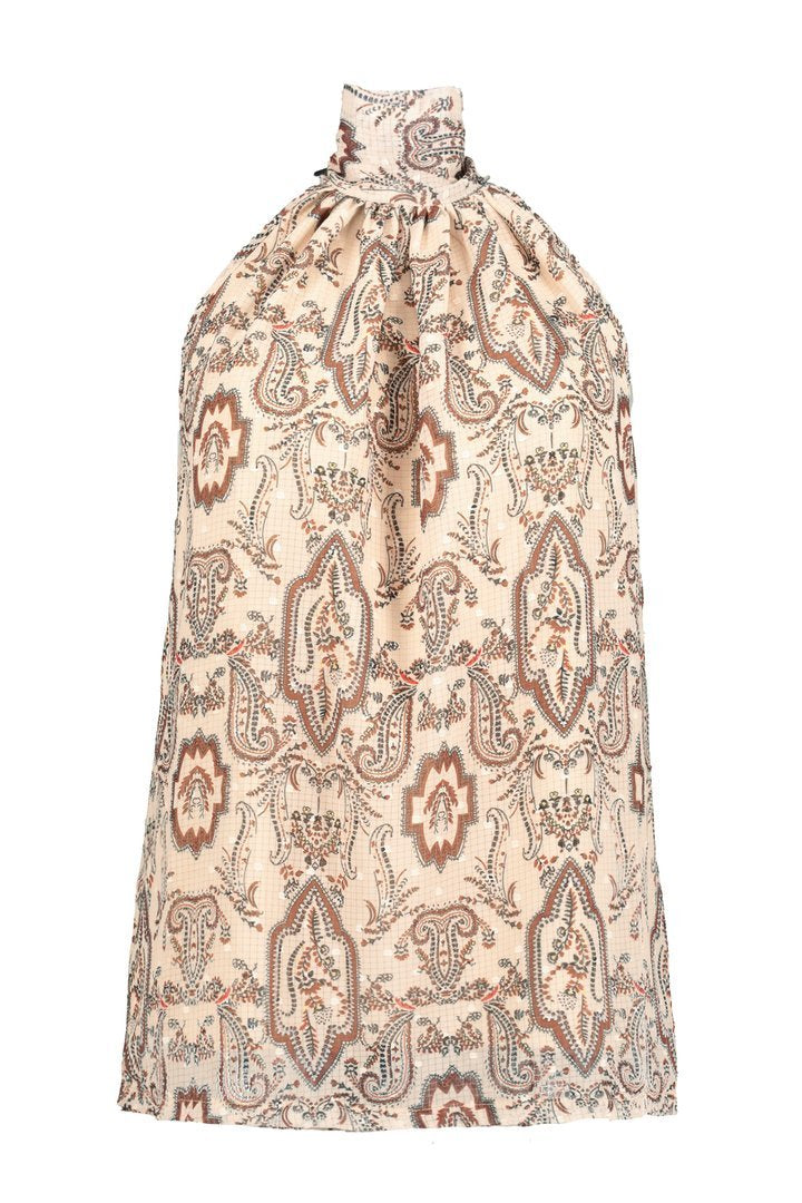 Our best selling Tie Neck Top is back in a globally inspired print for Spring! Pair it with white denim and sandals for a casual spring look! Claudeen Tie Neck Top- adjustable tie neck detail. Roma Paisley print. True to size. Pair with the denim retro belted skirt or summertime Tencel short.