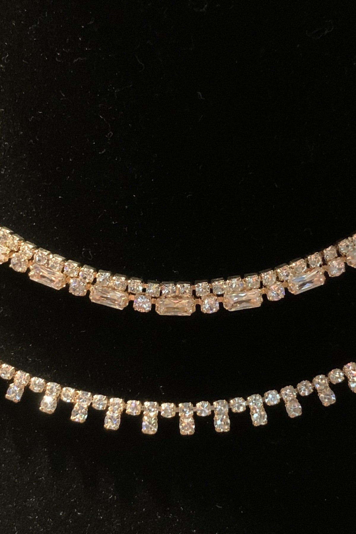 This Set Is Amazing With Two Brilliant Sparkling Strands. Square Rhinestone Necklace And Small Dangle Rhinestone Necklace. A Must For All After Five Events!