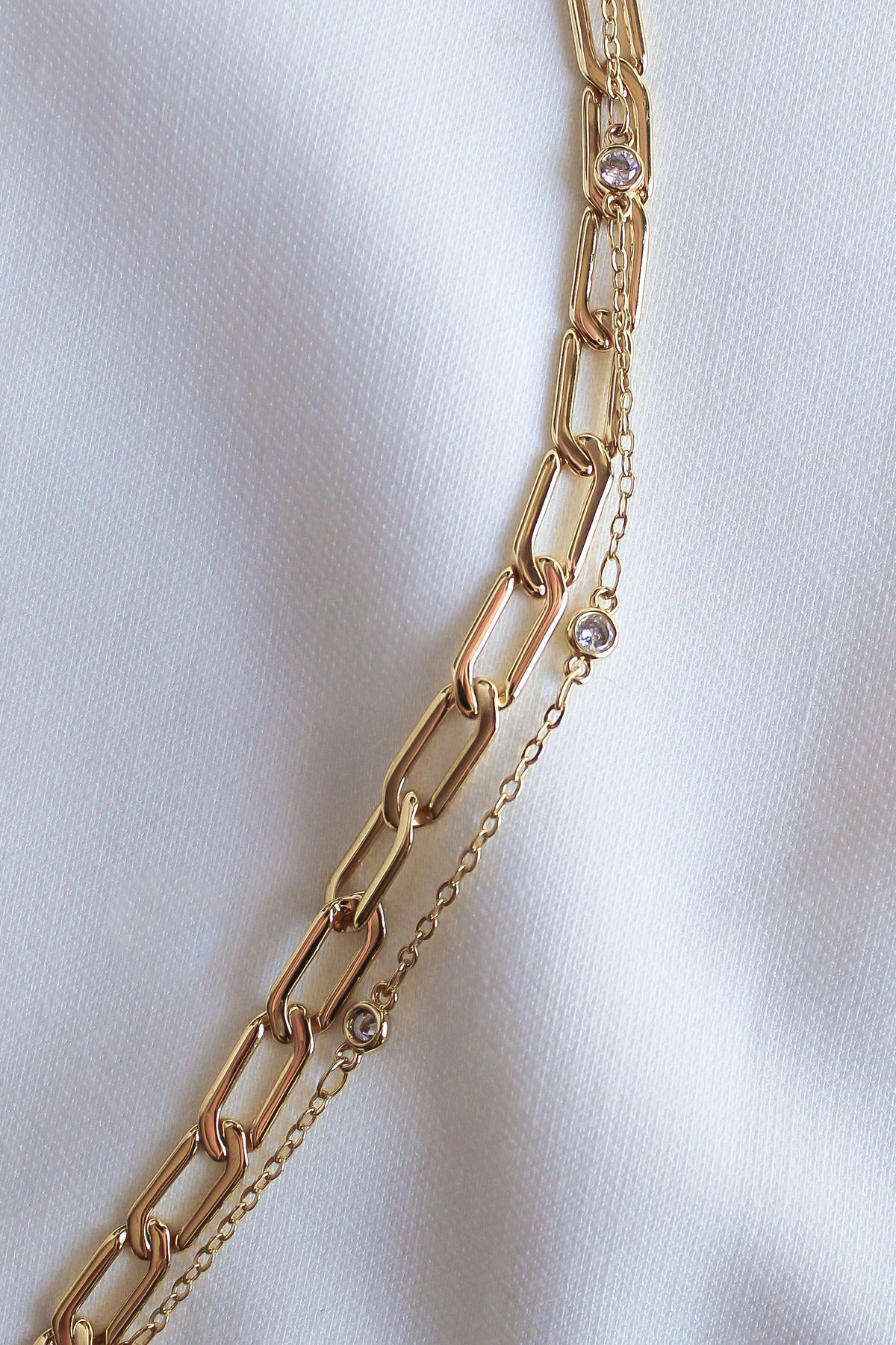 Dainty Cubic Zirconia Chain And Flat Lay Chain W/Extender