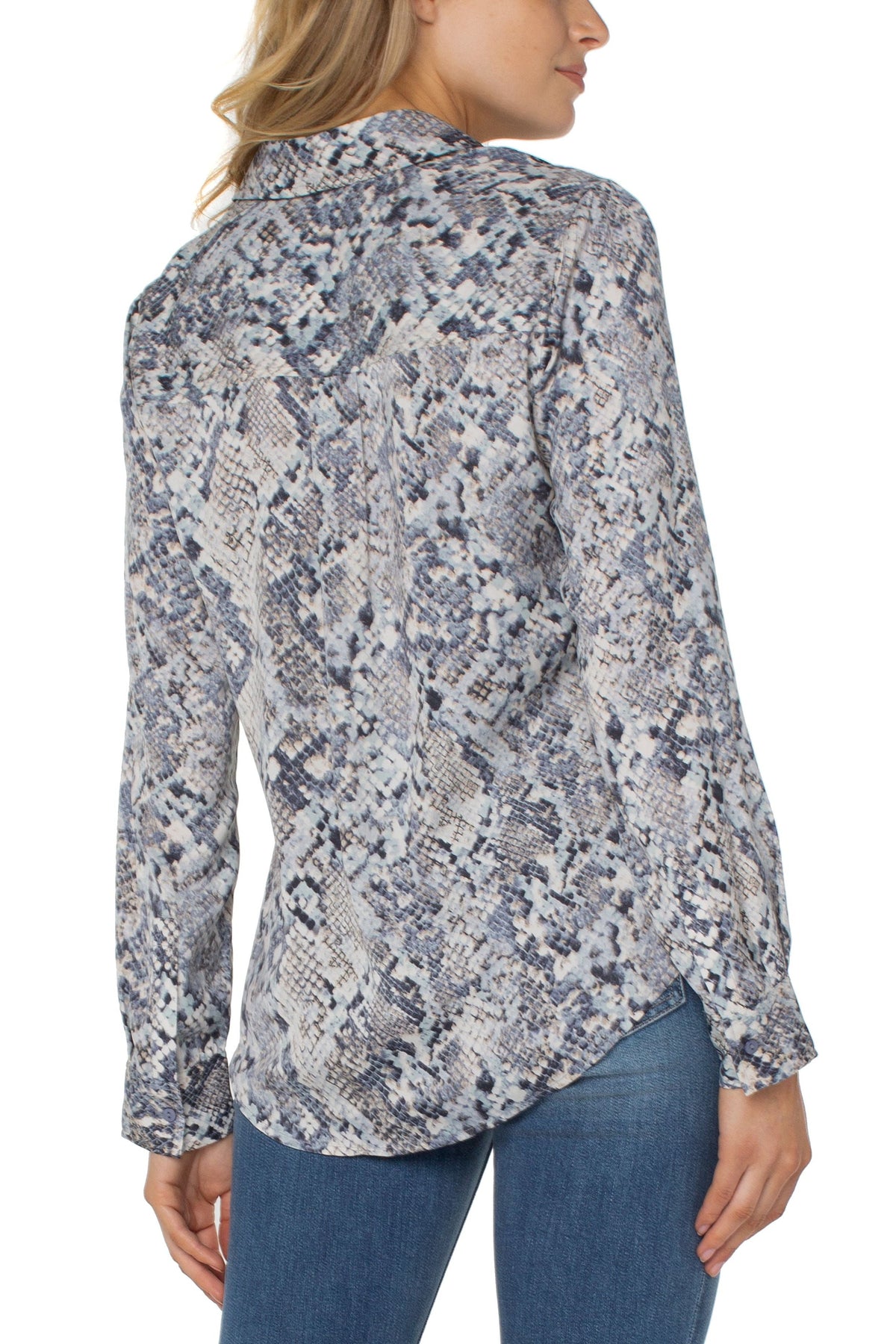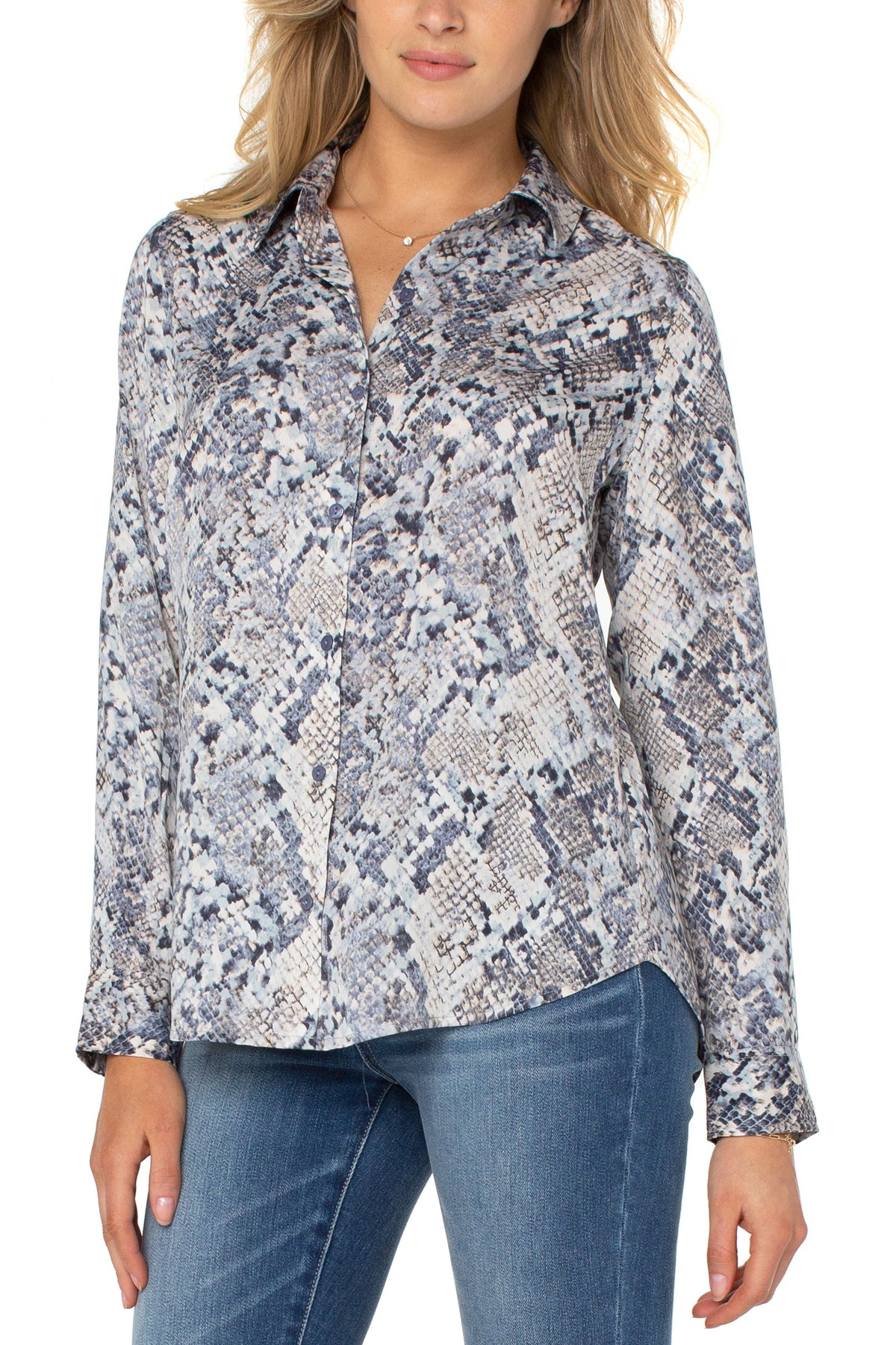 Liverpool Button Up Woven Blouse In Abstract Snake