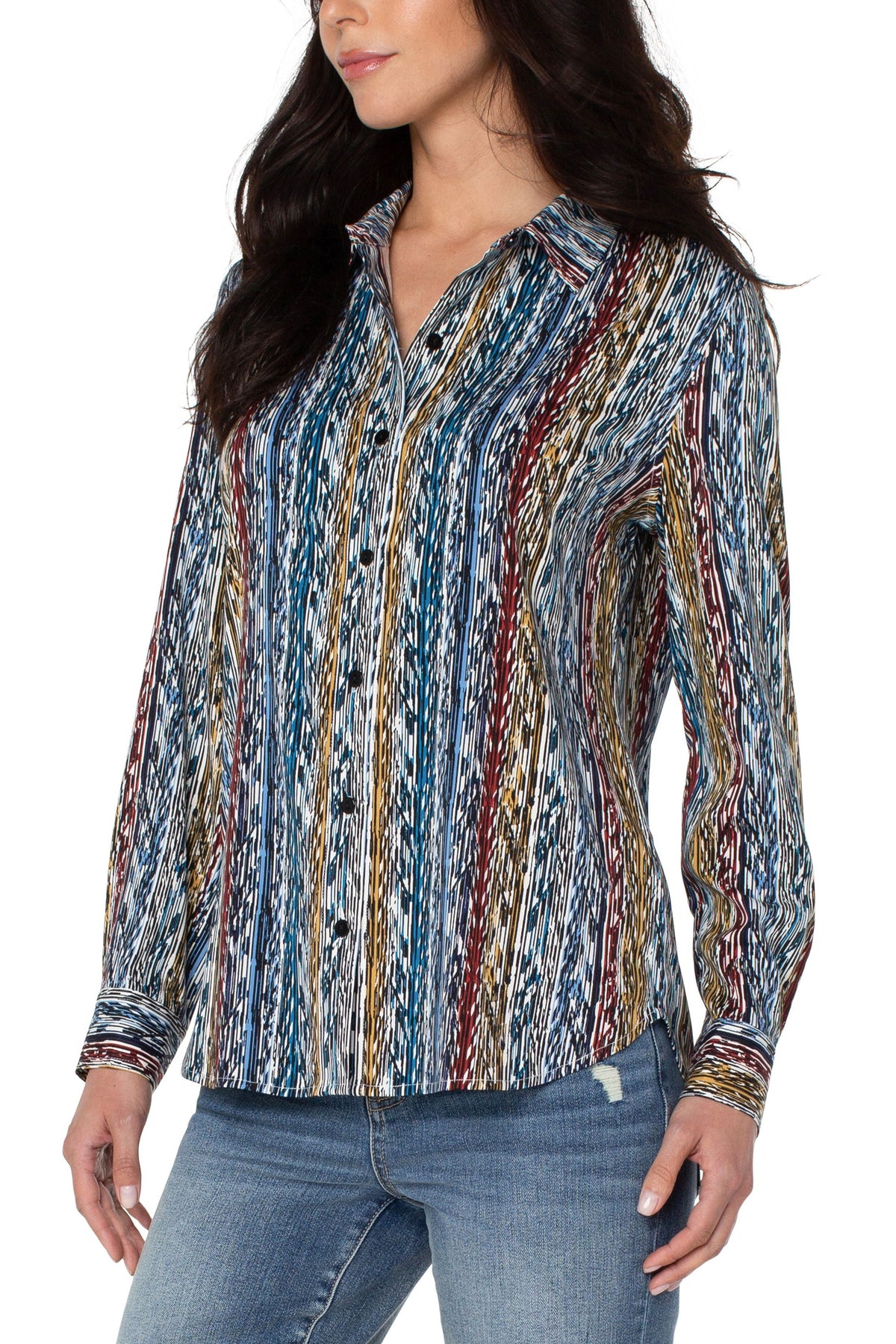 Liverpool Button Up Woven Blouse In Arrow Ikat