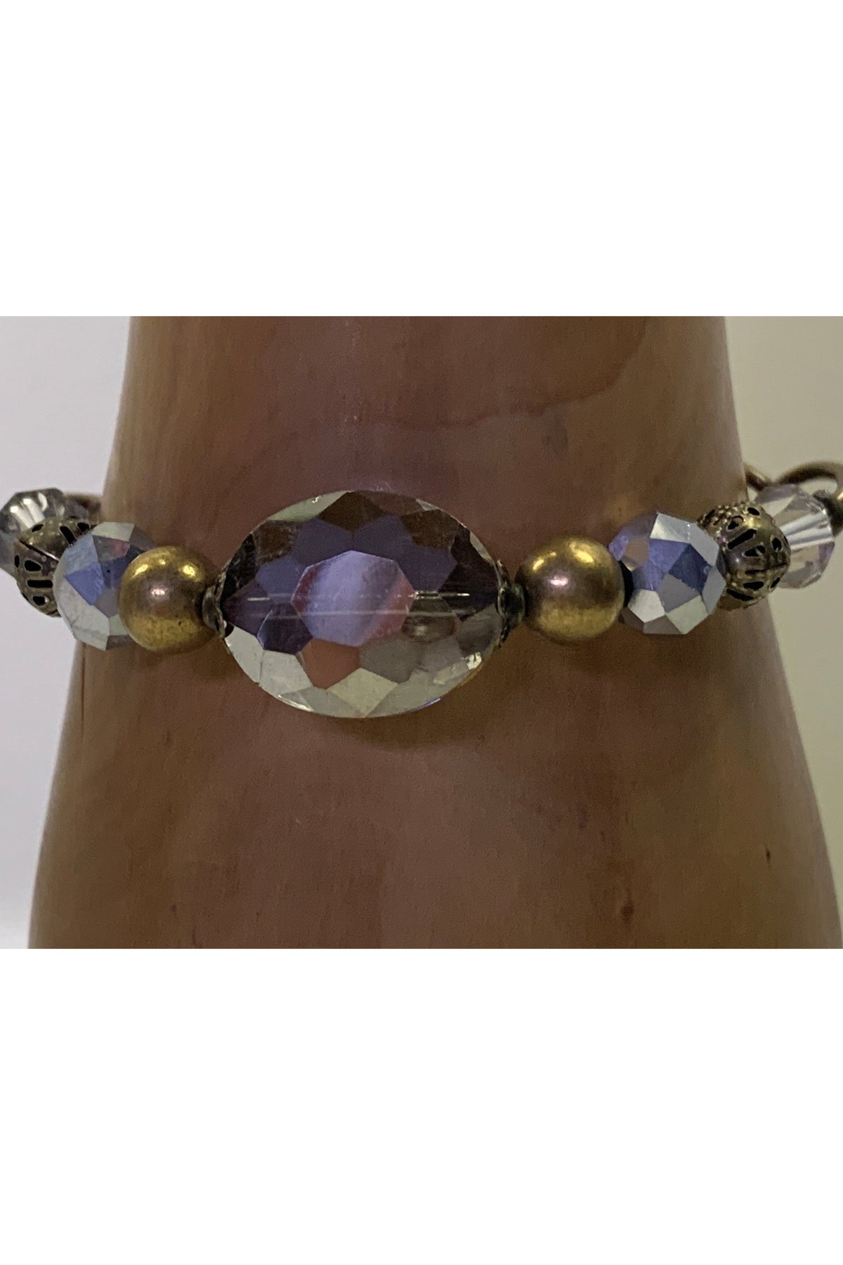 A Beautiful Gold Chain Bracelet With A Large Crystal Center Followed By Smaller Gold Bead To Larger Gun Metal Bead To Gold Filigree Bead And Then Crystal Bead. A Beautiful Piece On It's Own Or Paired With Matching Necklace And Earrings.