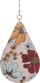 Add a pop of floral flair to your look with this teardrop-shaped wood earring from Rain Jewelry. Lightweight and full of charm, it features a soft pastel pink background adorned with red, yellow, and sky-blue flowers—perfect for brightening up any outfit with a touch of retro garden vibes.