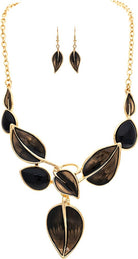 Rain Jewelry Gold Smokey Grey Enamel Leaf Bib Necklace & Earring Set