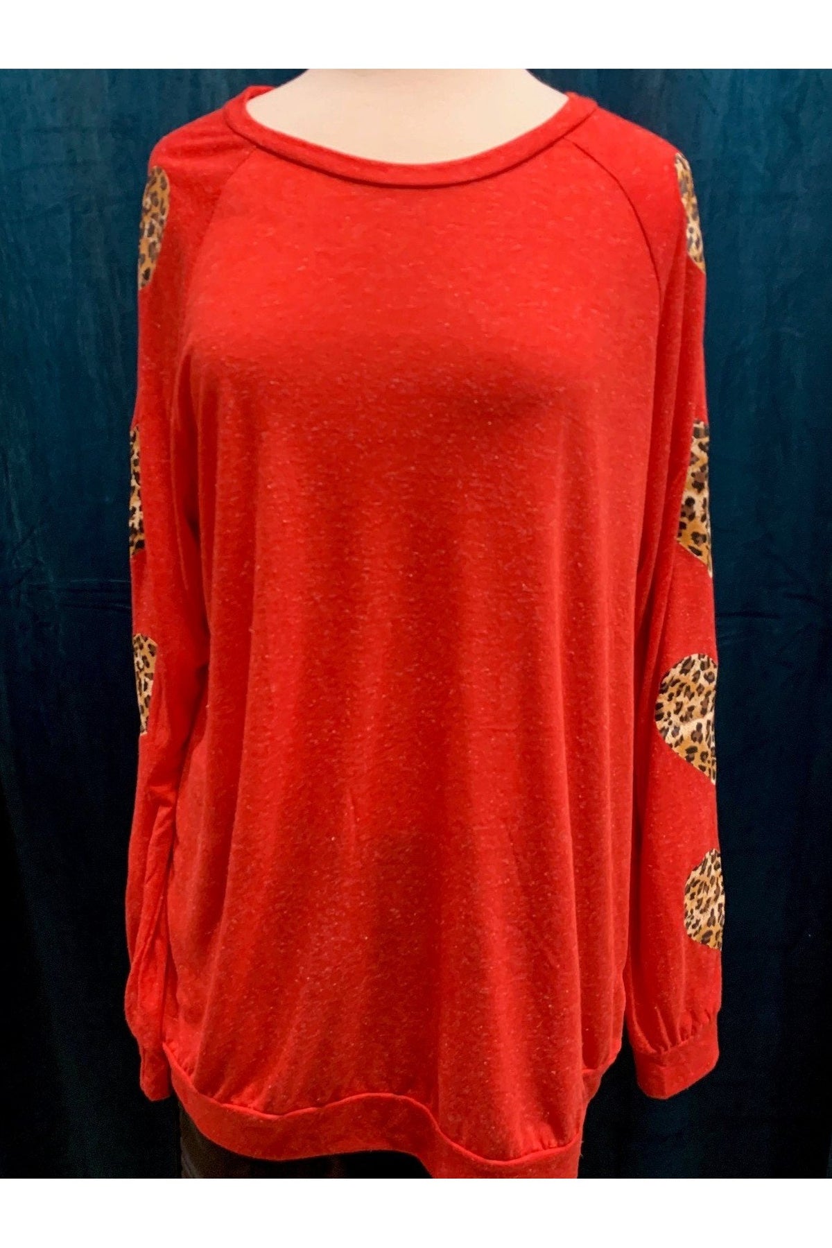 A Bright Cheery Red Long Sleeve Top With Adorable Leopard Heart Sleeves. Great For Valentines Day Or Any Day Of The Year. Pair With Jeans Or Leopard Pants For A Finished Look.
