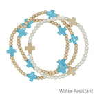 Water-Resistant Beaded Stretch Bracelet with Cross Accents